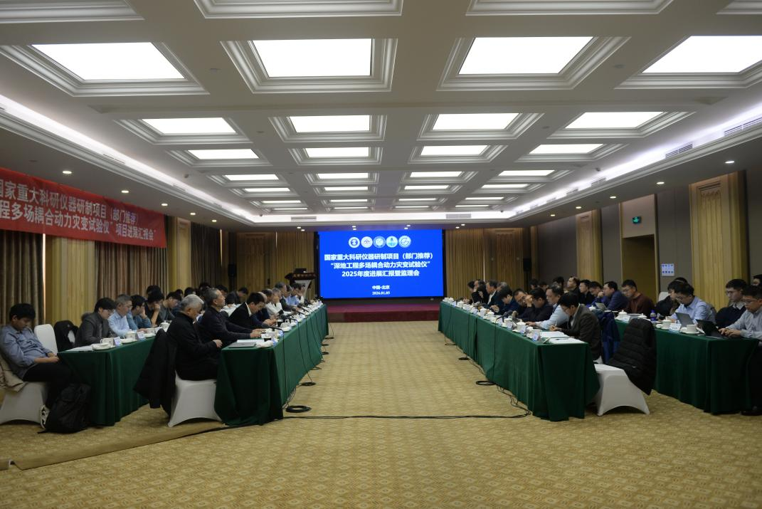 1月5日,由我校作为依托单位,袁亮院士主持的国家重大科研仪器研制项目(部门推荐)“深地工程多场耦合动力灾变试验仪”2025年度进展汇报暨监理会在北京召开。会议邀请了国家自然基金委工材学部工程科学一处副处长王西勃及项目监理组专家中国工程院院士、北京科技大学吴爱祥教授,郑州大学副校长单崇新教授,重庆大学许江教授,山东大学王普伟高级会计师,并特别邀请了中国工程院院士、中国石油大学(北京)张来斌教授,中国工程院院士、江西理工大学校长葛世荣教授,中国工程院院士、辽宁大学党委书记潘一山教授,中国工程院院士、武汉大学刘泉声教授,中国工程院院士、中南大学李夕兵教授,北京科技大学何学秋教授,未亡人